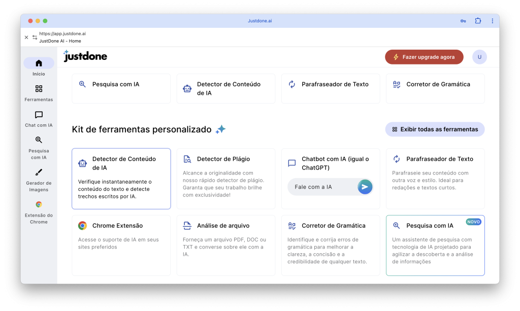 Ferramentas que reúnem detecção, plágio, tom e paráfrase em um só lugar (como o JustDone, por exemplo) ajudam a agilizar esse fluxo. Mas nenhuma substitui o seu olhar crítico — é a revisão final que transforma rascunho em texto de verdade.